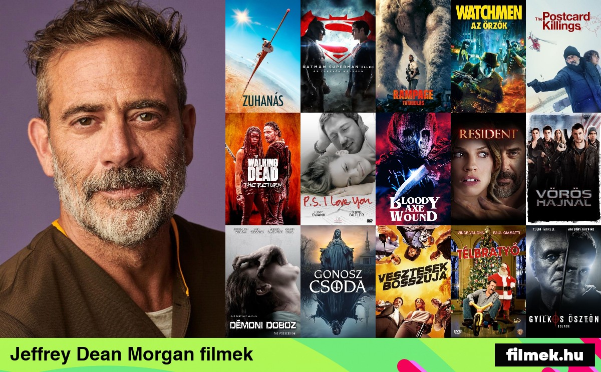 Jeffrey Dean Morgan összes filmje amiben szerepelt, ez lehet főszereplés vagy mellékszerep, animációs filmek esetében csak a színész hangja és stílusa. Jeffrey Dean Morgan filmek adatbázisunkban mind megtalálhatóak, naponta frissítjük az új filmekkel adatbázisunkat, a filmek megjelenési dátum szerint vannak sorba rendezve, így a legújabb filmjét találhatjátok legelől.