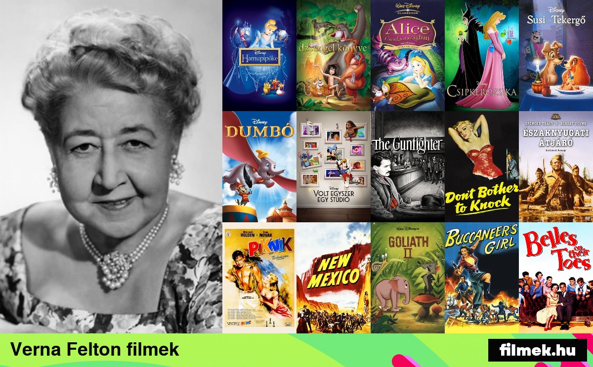 Verna Felton összes filmje amiben szerepelt, ez lehet főszereplés vagy mellékszerep, animációs filmek esetében csak a színész hangja és stílusa. Verna Felton filmek adatbázisunkban mind megtalálhatóak, naponta frissítjük az új filmekkel adatbázisunkat, a filmek megjelenési dátum szerint vannak sorba rendezve, így a legújabb filmjét találhatjátok legelől.
